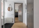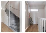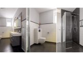 Overloop met toegang tot meerdere slaapkamers en de complete badkamer. De badkamer is ingericht met een inloopdouche, dubbele wastafel en toilet. De slaapkamers zijn praktisch van formaat en flexibel te gebruiken.