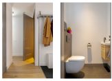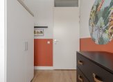 Ruime entree/hal met toilet, inloopkast en toegang tot een praktische thuiswerkplek of kantoorruimte aan de voorzijde van de woning. Deze ruimte is niet alleen ideaal voor thuiswerken of studeren, maar leent zich ook uitstekend voor het realiseren van een slaapkamer met badkamer op de begane grond. Daarmee is de woning eenvoudig aan te passen voor gelijkvloers wonen, nu of in de toekomst.
