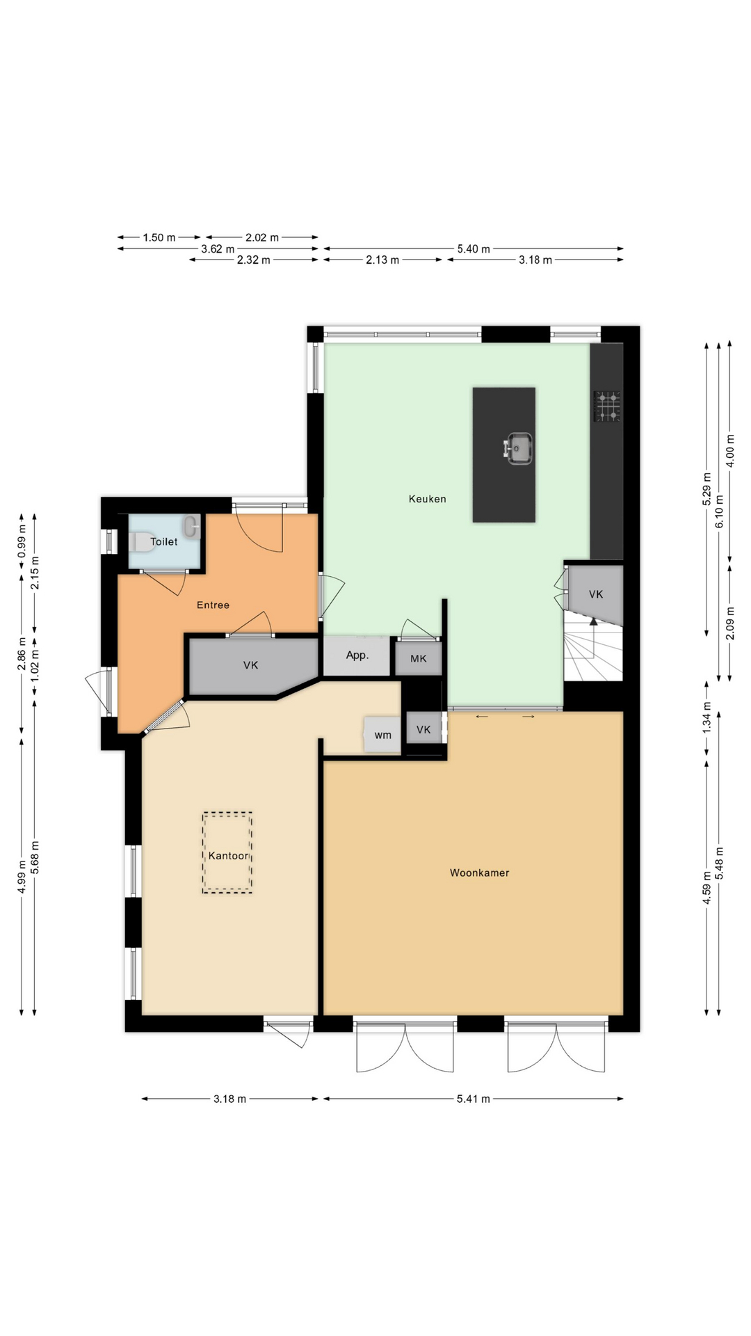 * Kantoorruimte op de begane grond, ideaal voor het realiseren van een slaapkamer en badkamer