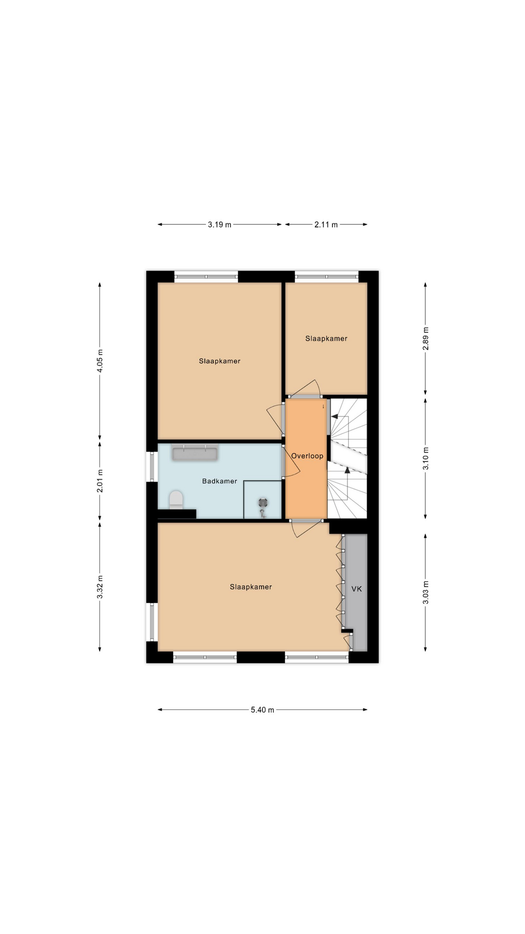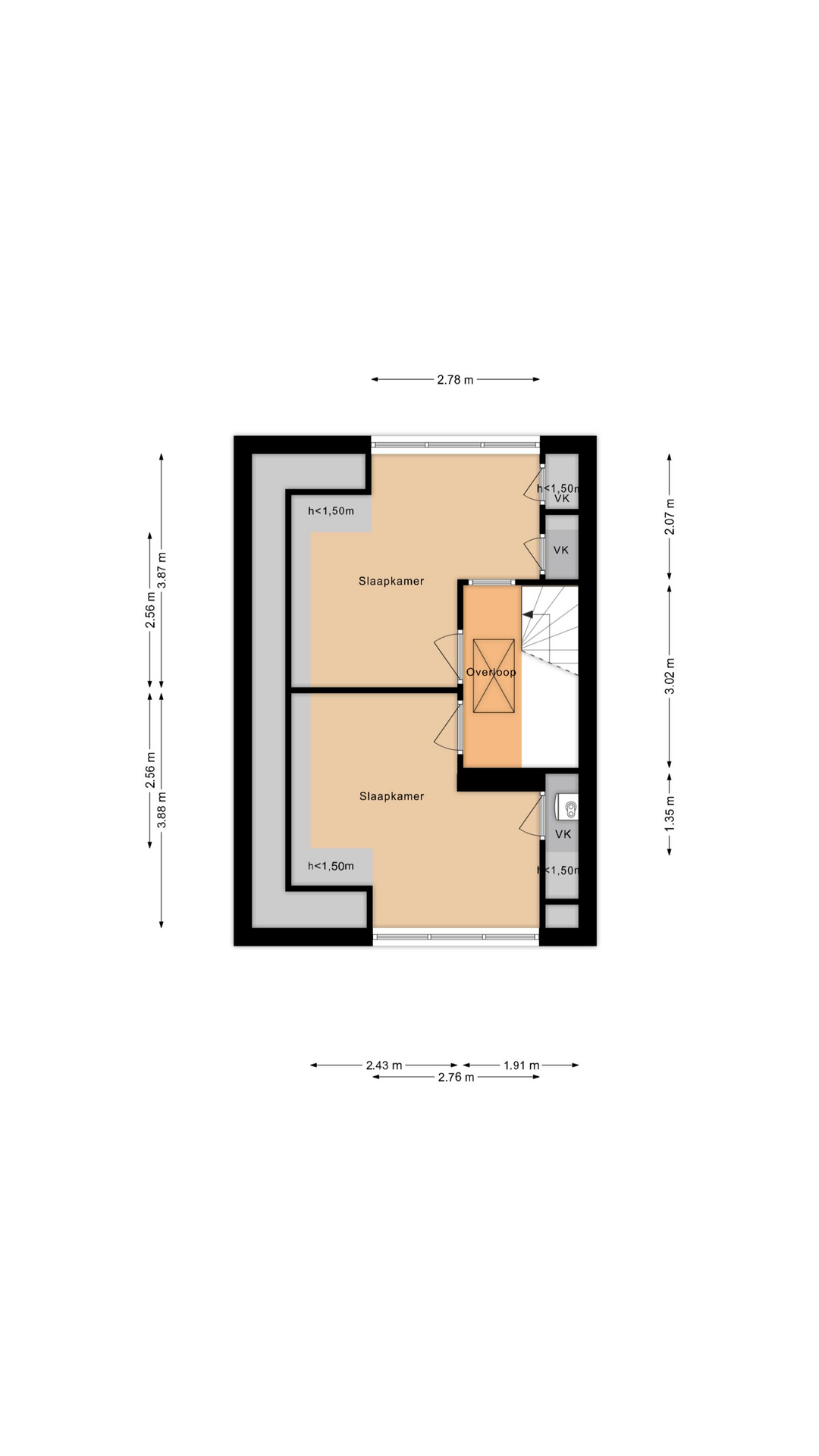 Overloop met toegang tot twee volwaardige slaapkamers. Dankzij de dakkapellen aan zowel de voor- als achterzijde, beide voorzien van screens, is deze verdieping ruim, licht en uitstekend bruikbaar. Daarnaast is er praktische bergruimte aanwezig en is via een vlizotrap een extra vliering bereikbaar. Een volwaardige verdieping die perfect geschikt is als slaapverdieping, werkruimte of combinatie van beide.