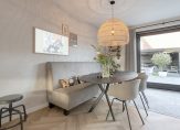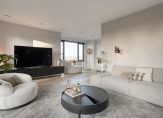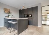 De woonkamer ligt aan de voorzijde en is ruim en licht, maar tegelijk heel sfeervol en gezellig. De erker vormt een heerlijke, lichte loungeruimte waar je geniet van de zon op je gezicht en een uitzicht dat nooit verveelt. Een perfecte plek voor je ochtendkoffie of een goed boek. Op koudere dagen zorgt de gashaard voor extra comfort; deze biedt niet alleen aangename warmte, maar voegt ook sfeer en een gevoel van luxe toe aan de ruimte.