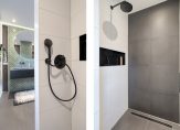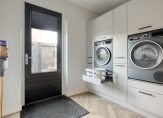 Ook de praktische ruimtes zijn tot in detail verzorgd. Denk aan maatwerkkasten in de bijkeuken, in de grote slaapkamer op de eerste verdieping en een inloopkast op de tweede verdieping. Alles is strak afgewerkt en logisch ingericht, zodat het huis niet alleen mooi is, maar ook prettig leeft in het dagelijks gebruik.