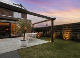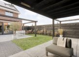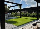 De tuin is prachtig aangelegd, met meerdere terrassen en altijd een plek in de zon én schaduw. Dankzij de ligging op zuid/oost zit je hier de hele dag heerlijk in de zon, terwijl je ook eenvoudig de koelte opzoekt wanneer je dat wilt. Een heerlijke overkapping ontbreekt ook niet, met heater en internetaansluiting. Hier geniet je tot het einde van de avond, tot het moment dat de zon ondergaat, nog van de zon. De overkapping is onderdeel van het buitengebouw en deze is eveneens voorzien van een ruime schuur. Ook is er vrij uitzicht over het buitengebied en de weilanden: een zeldzame combinatie van nieuwbouwcomfort en een groene, vrije beleving.