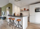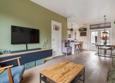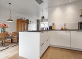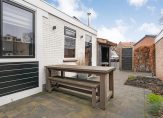 De sfeervolle woonkamer biedt genoeg ruimte voor een knusse zithoek én een gezellige eethoek. De keuken is functioneel ruim en sluit goed aan op de rest van de woning. Vanuit hier kom je in de praktische bijkeuken waar o.a. de wasmachine en droger staan. Aansluitend zit de berging en vanuit hier loop je zo de achtertuin in!