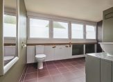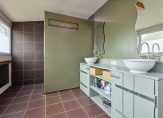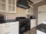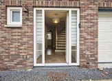 Aan de achterzijde vind je de ruime eethoek en grote open keuken, uitgerust met diverse inbouwapparatuur en (voor de echte kookliefhebber) nog koken op gas. Via de openslaande deuren loop je zo de zijtuin in, waardoor binnen en buiten moeiteloos in elkaar overlopen. De trapkast is slim ingericht als wasruimte, praktisch en uit het zicht.