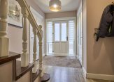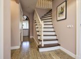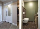Thuiskomen is hier extra prettig, met parkeren op eigen terrein aan de voorzijde van het erf. Binnen is het minstens zo prettig: bij binnenkomst stap je in een ruime hal met volop plek voor jassen en schoenen, het toilet, de trapopgang naar de eerste etage én een deur naar de inpandig bereikbare garage met elektrische roldeur, water en elektra.