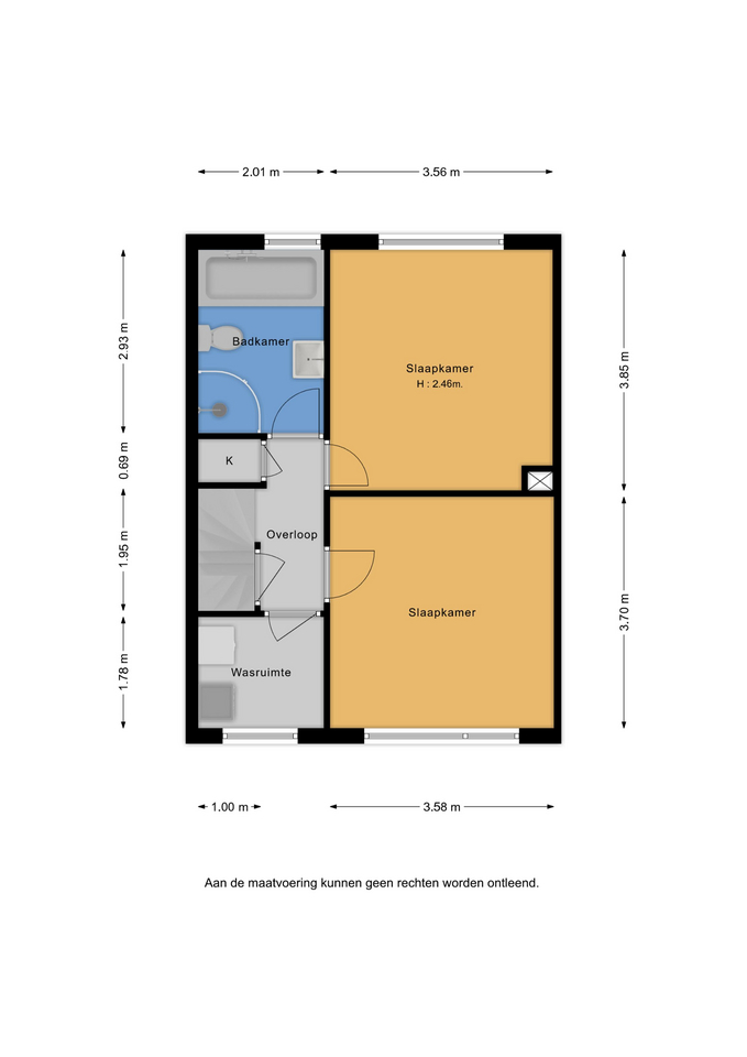 De eerste verdieping biedt twee ruime slaapkamers en een wasruimte. De voormalige logeerkamer is omgetoverd tot een luxe badkamer met een douche, toilet, wastafelmeubel en een heerlijk ligbad.