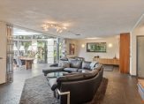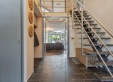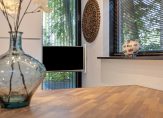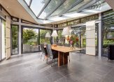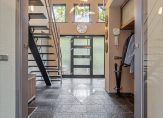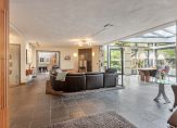 De royale entree leidt naar een lichte hal en een sfeervolle T-vormige woonkamer met een serre. De totale oppervlakt evan de woonkamer en de serre bedraagt ruim 70 m2.