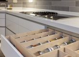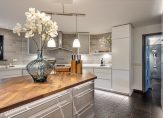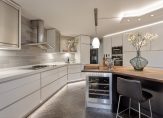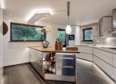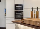 De luxe keuken is een waar kookparadijs, voorzien van een royaal kookeiland met Quooker, twee Miele inductiekookplaten en een wokbrander op gas, stoomoven, bakoven, koelkast, vriezer, vaatwasser, magnetron, afzuigkap met externe motor en zelfs een ingebouwde TV.
