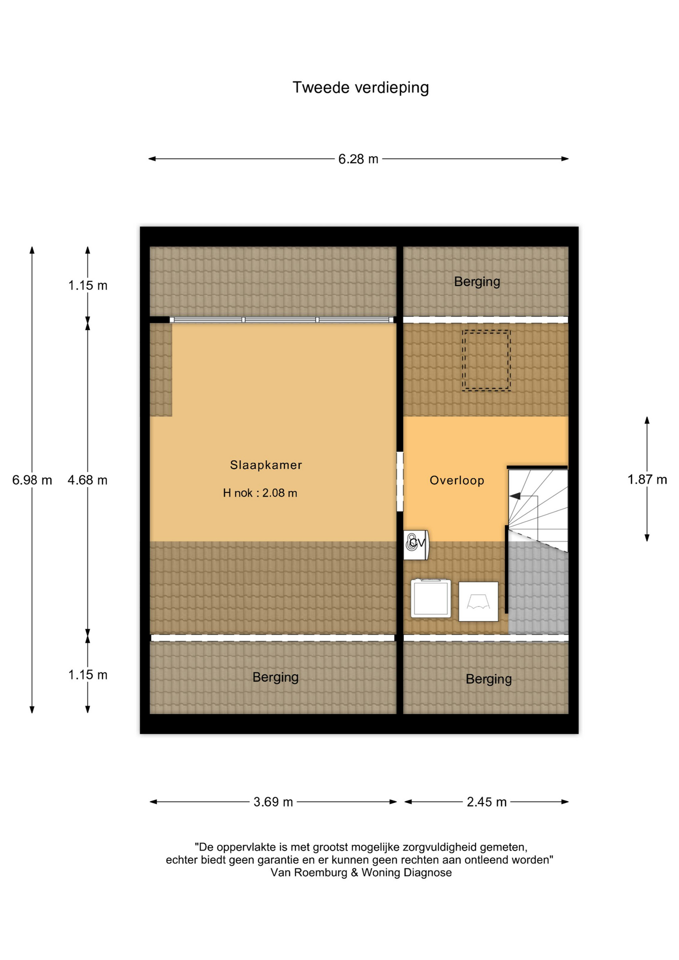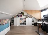 Op de eerste verdieping vind je 3 ruime slaapkamers en een moderne badkamer voorzien van een douche, wastafelmeubel en een 2e toilet. Op de tweede verdieping zijn nog eens 1 grote slaapkamer met een dakkapel en een voorzolder met c.v. opstelling en witgoedaansluitingen gelegen.