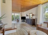 Royale entree/hal met meterkast, net toilet, technische ruimte en toegang tot de garage, keuken en woonkamer. De woonkamer met open haard is heerlijk licht door de raampartijen en de openslaande deuren naar de zijtuin. Aan de achterzijde is de keuken met eetgedeelte en deur naar het terras onder de overkapping en de tuin. De keuken is voorzien van nette keukeninrichting met inbouwapparatuur (5-pits gaskookplaat met afzuigkap, vaatwasser, koelkast en oven uit 2025). De woonkamer en keuken zijn samen ca. 49 m² groot. Via de garage van ca. 21 m² kom je in de bijkeuken/berging met witgoedaansluitingen, c.v.-opstelling en extra toegangsdeur naar de tuin.