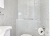 Overloop met vaste kast, 3 slaapkamers van ca. 13, 14 en 15.4 m², waarvan 1 toegang geeft tot het balkon, en een nette badkamer met douche, wastafel met meubel en 2e toilet.