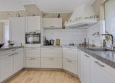 Zij-entree met ruime hal, moderne woonkeuken van ca. 22 m² voorzien van inbouwapparatuur, lichte woonkamer van ca. 19 m² met houtkachel, erker en vrij uitzicht over het weiland. Via de hal van de zij-entree zijn de moderne/nette toiletruimte, bijkeuken met wasruimte en c.v.-opstelling, royale slaapkamer van ca. 20 m² met aangrenzend een royale nette badkamer van ca. 10 m² voorzien van inloopdouche en dubbele wastafel te bereiken. Vanuit de hal bij de voorentree is er toegang tot de kelder voor provisie en trapopgang naar de 1e verdieping. Aangrenzend aan het huis is de in spouw gebouwde garage van totaal ca. 41 m² met werkkamer en elektrische deur en een eigen entree naar de verdieping boven de garage. Hier vind je een royale slaap-/werkkamer van ca. 16 m² en een badkamer met douche, toilet en wastafel.