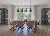 You enter into a generous hallway with wardrobe space, a modern toilet, and a stylish staircase. Through elegant double doors, you step into the main living area. The bright living and dining room features large windows and a sliding door to the side garden, allowing indoor and outdoor spaces to flow beautifully together. The entire ground floor is finished with a high-quality Meister design floor with underfloor heating: stylish, durable, scratch-resistant, and very low-maintenance – perfect for everyday comfort.