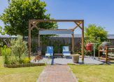 Rondom de woning ligt een fraai aangelegde tuin met een groot gazon, vaste planten, fruitbomen en struiken. Dankzij de gunstige ligging geniet je hier van zon van ’s ochtends vroeg tot in de avond – ideaal voor buitenleven en ontspanning.