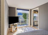 Allereerst tref je een overloop aan met toiletruimte en deuren naar het kantoor en de twee slaapkamers beide met een balkon. Eén van de kamers heeft toegang tot eigen badkamer die ook vanuit de overloop bereikbaar is. De badkamer heeft een inloopdouche en een wastafel. Verder is er een 2e overloop met deuren naar riante slaapkamer met walk-in closet en eigen grote badkamer met ligbad, douche en wastafel. Is er nog tijd voor extra relaxen? Dan is er een deur naar een zeer grote ruimte die ingericht is als een fijne thuis-spa met sauna en dompelbad.