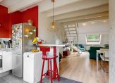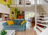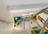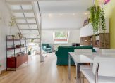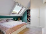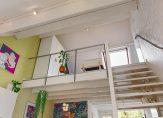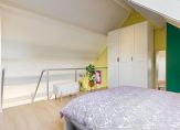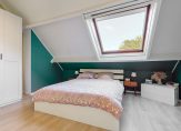 Open slaapvide met diverse mogelijkheden. Door het hoge en speelse plafond aan de ene kant en open verbinding met de woonverdieping aan de andere kant is er een sfeervol geheel ontstaan.