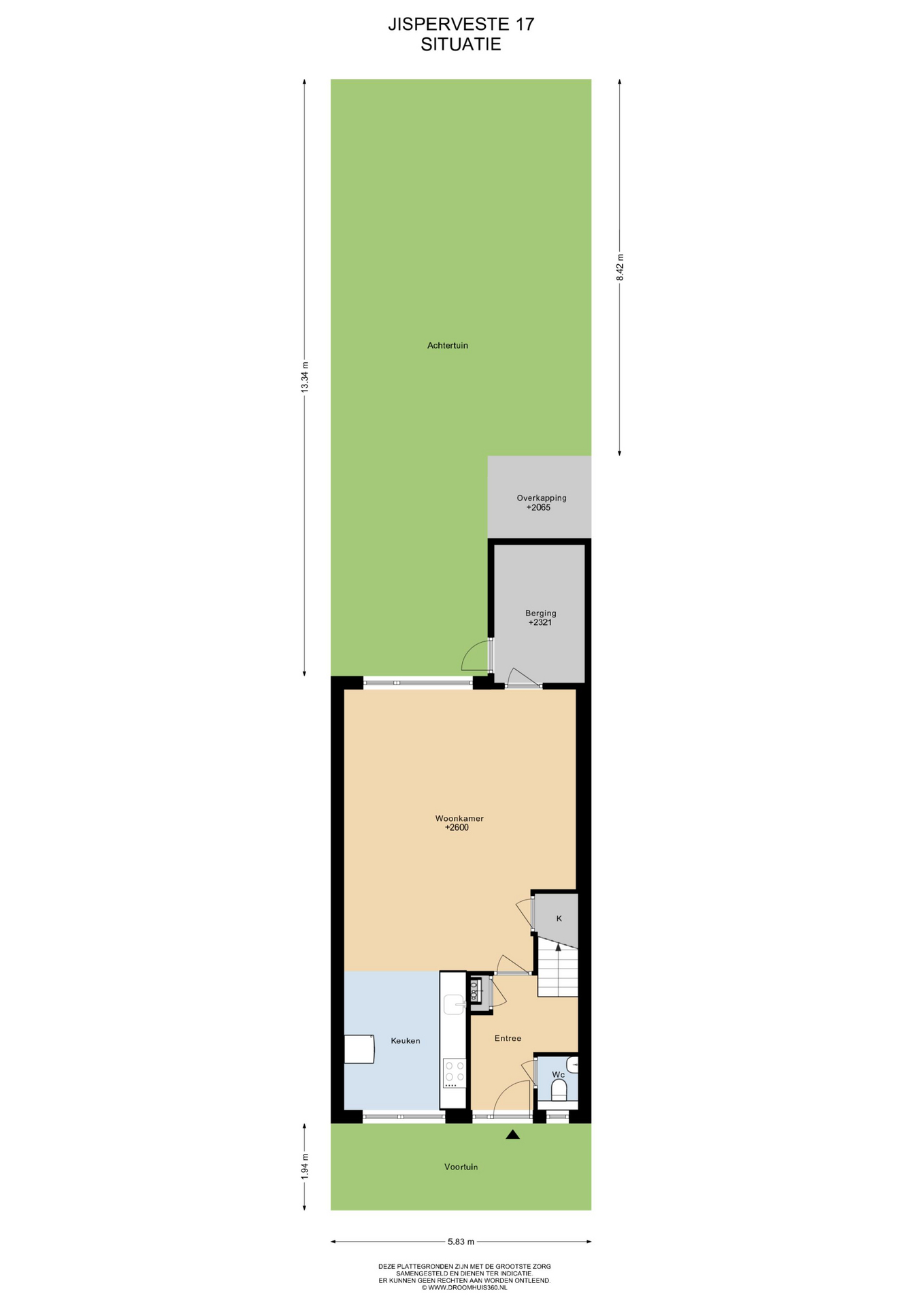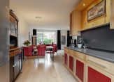 Begane grond: entree/hal met meterkast en toilet, ruime tuingerichte woonkamer met trapkast en toegang tot de berging. De half open keuken is eveneens ruim en bevindt zich aan de voorzijde van de woning, keukeninrichting voorzien van inductiekookplaat, oven en afzuigkap.