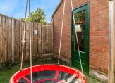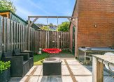 Middels openslaande deuren is de achtertuin bereikbaar. Achterin de tuin bevindt zich een stenen berging, ideaal voor fietsen, gereedschap of tuinmeubilair. Via een achterom is de tuin bovendien makkelijk bereikbaar.