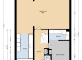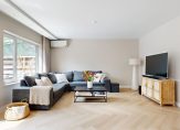 – De voormalige garage is omgebouwd tot salon met kleine keuken
