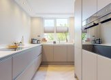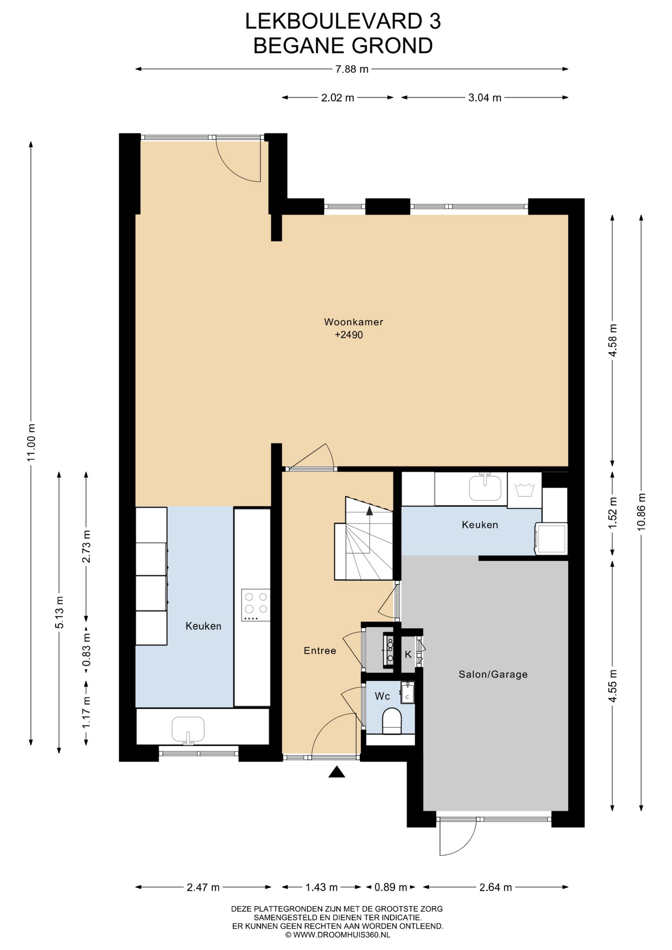 Op de begane grond vind je een ruime en lichte woonkamer met luxe pvc vloer met vloerverwarming. Op de begane grond is een luxe en moderne keuken aanwezig, welke is voorzien van diverse inbouwapparatuur, te weten: inductiekookplaat met afzuiging, koelkast, stoomoven, combimagnetron, vaatwasser en Quooker. De begane grond is afgewerkt met strak stucwerk. De voormalige garage is omgebouwd tot luxe salon waar eveneens een kleine keuken, airco en vloerverwarming aanwezig is.