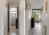 Een afgesloten centrale hal met liftinstallatie geeft toegang tot de woning.