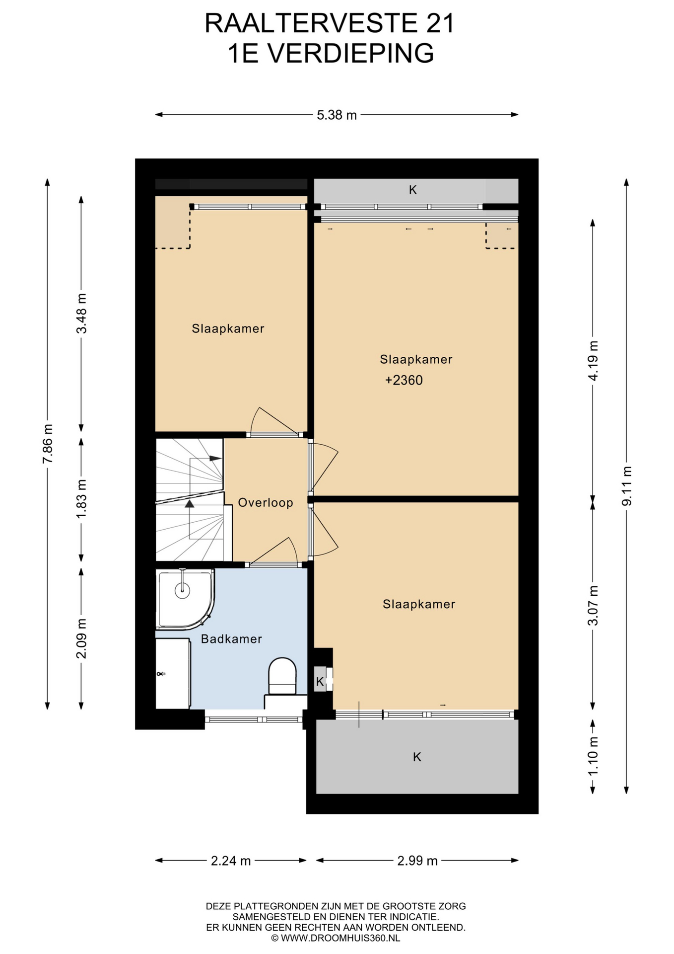 De eerste verdieping bevat drie comfortabele slaapkamers met rolluiken en een badkamer uitgerust met toilet, douche, wastafel en wastafelmeubel. Als je de trap op gaat naar de tweede verdieping, vind je nog een slaapkamer, waardoor deze woning ideaal is voor een groeiend gezin.