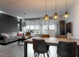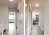 Woonverdieping: Ruime hal met modern hangend toilet, meterkast, een praktische inbouwkast met wasmachineaansluiting. De lichte woonkamer, dankzij grote zuidelijk gelegen raampartijen, biedt een prettige sfeer. De moderne, halfopen keuken aan de voorzijde is uitgerust met hoogwaardige inbouwapparatuur, zoals een inductiekookplaat, afzuigkap, vaatwasser, stoomoven, combi-oven/magnetron, koelkast en vriezer. Via de woonkamer bereik je het zonnige balkon en de handige trapkast.