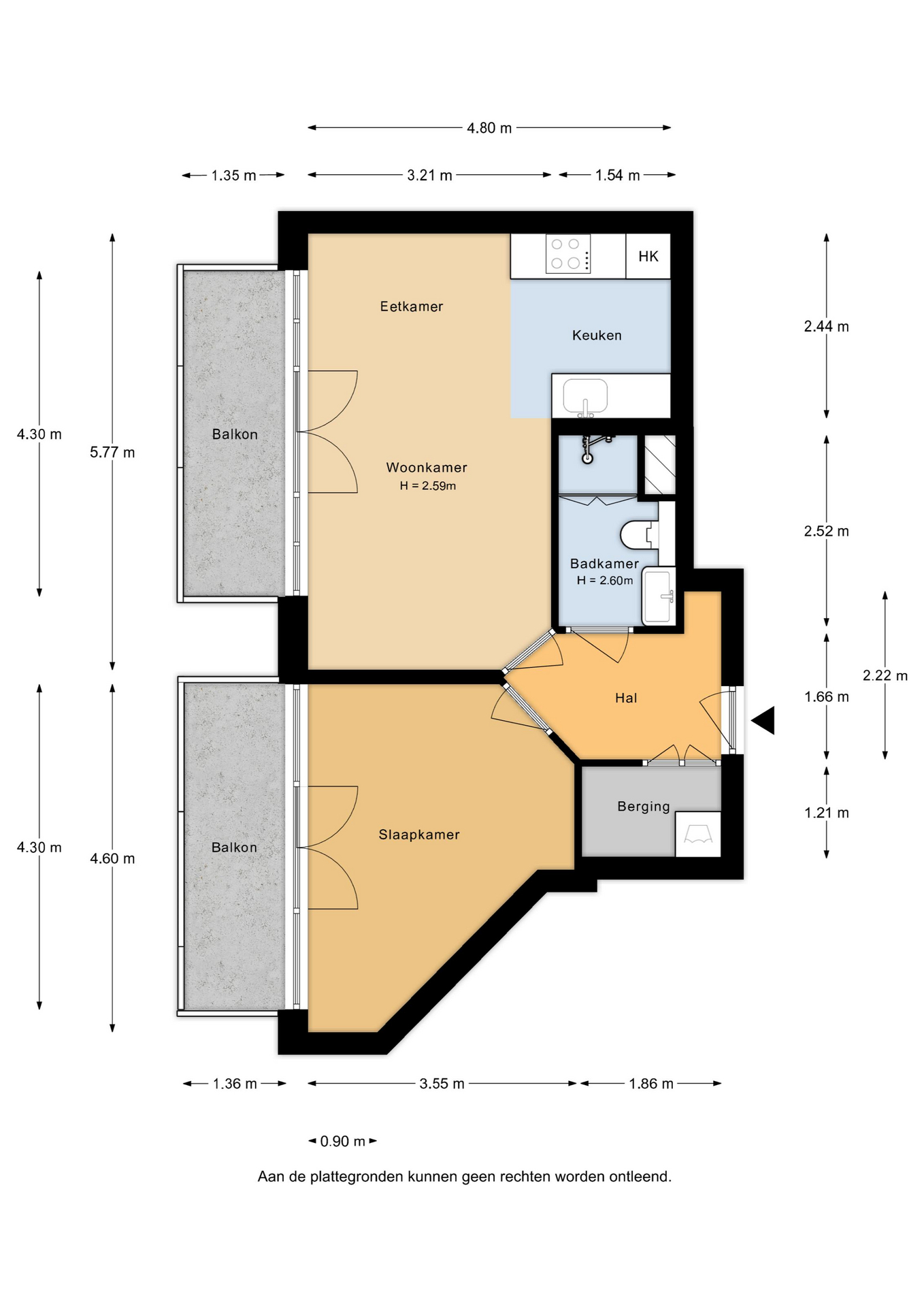 Zowel vanuit de woonkamer als vanuit de slaapkamer stap je zo naar buiten. De woning beschikt over twee balkons van elk circa 6 m², waar je op elk moment van de dag een fijn plekje in de zon of juist de schaduw kunt vinden.