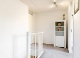 Overloop met toegang naar een 3-tal ruim bemeten slaapkamers en de moderne badkamer. Deze moderne en compleet betegelde badkamer beschikt over een inloopdouche, 2de toilet, vaste wastafel met meubel, wasmachine/droger en raam.