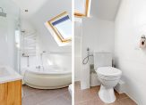 Verdieping 1: overloop met velux dakraam en wasruimte, 2-tal goed bemeten slaapkamers waarvan 1 slaapkamer met kastenwand. Verder een keurige badkamer met wastafel in ombouw, ligbad, douchecabine en 2e toilet.