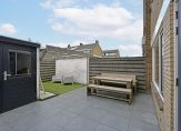 De achtertuin heeft een prettig formaat en beschikt over een praktische achterom. De stenen berging met elektra biedt voldoende ruimte voor fietsen en tuingereedschap. Hier kun je optimaal genieten van rust en privacy.