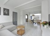 Aan de achterzijde bevindt zich een ruime slaapkamer en aan de voorzijde een tweede slaapkamer, beide met veel natuurlijk licht dankzij de grote ramen. In de voormalige badkamer aan de voorzijde is een separaat toilet geplaatst — praktisch en netjes afgewerkt.