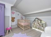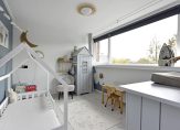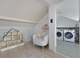 Op deze verdieping bevindt zich de derde slaapkamer, keurig afgewerkt en dankzij de dakkapel verrassend ruim. De stookruimte is netjes weggewerkt, waardoor de kamer rustig oogt en optimaal te gebruiken is.