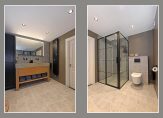 – Luxe badkamer met riante douche, toilet en wastafelmeubel met verwarmde spiegel
