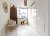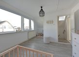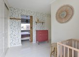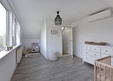 Vanaf de overloop bereik je de royale hoofdslaapkamer aan de voorzijde. De tussendeur brengt je naar de kinderkamer, waar je veel opbergruimte hebt door de ingebouwde kasten.