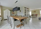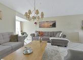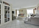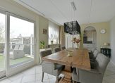 Via een toog bereikt u de lichte en royale woonkamer van circa 50 m². Deze ruimte beschikt over een fraaie schouw met gasgestookte open haard, een serre aan de voorzijde en een schuifpui die toegang biedt tot het balkon/terras van 16 m². De hele woonverdieping is voorzien van lichte vloertegels met comfortabele vloerverwarming.