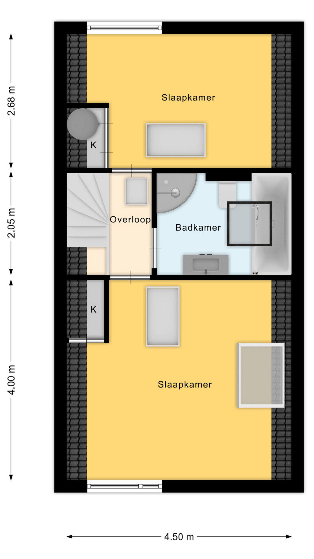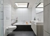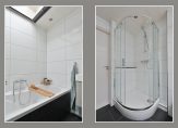 De centraal gelegen badkamer is in 2010 volledig vernieuwd, gelijktijdig met de plaatsing van de dakopbouw. De verzorgde badkamer beschikt over elektrische vloerverwarming, een hangend toilet, ligbad, douchecabine, wastafelmeubel, handdoekradiator en een groot dakraam voor veel natuurlijk licht.