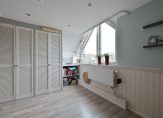 De royale master bedroom ligt aan de voorzijde en is voorzien van airconditioning. De kamer heeft een inbouwkast, waarbij optimaal gebruik is gemaakt van de ruimte tot aan de nok.