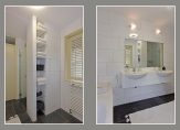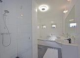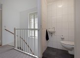 De complete badkamer is uitgevoerd met wit sanitair en voorzien van een douche, ligbad en dubbel wastafelmeubel. De ruimte is geheel betegeld en voorzien van vloerverwarming. Het separate toilet op de overloop is recent vernieuwd.
