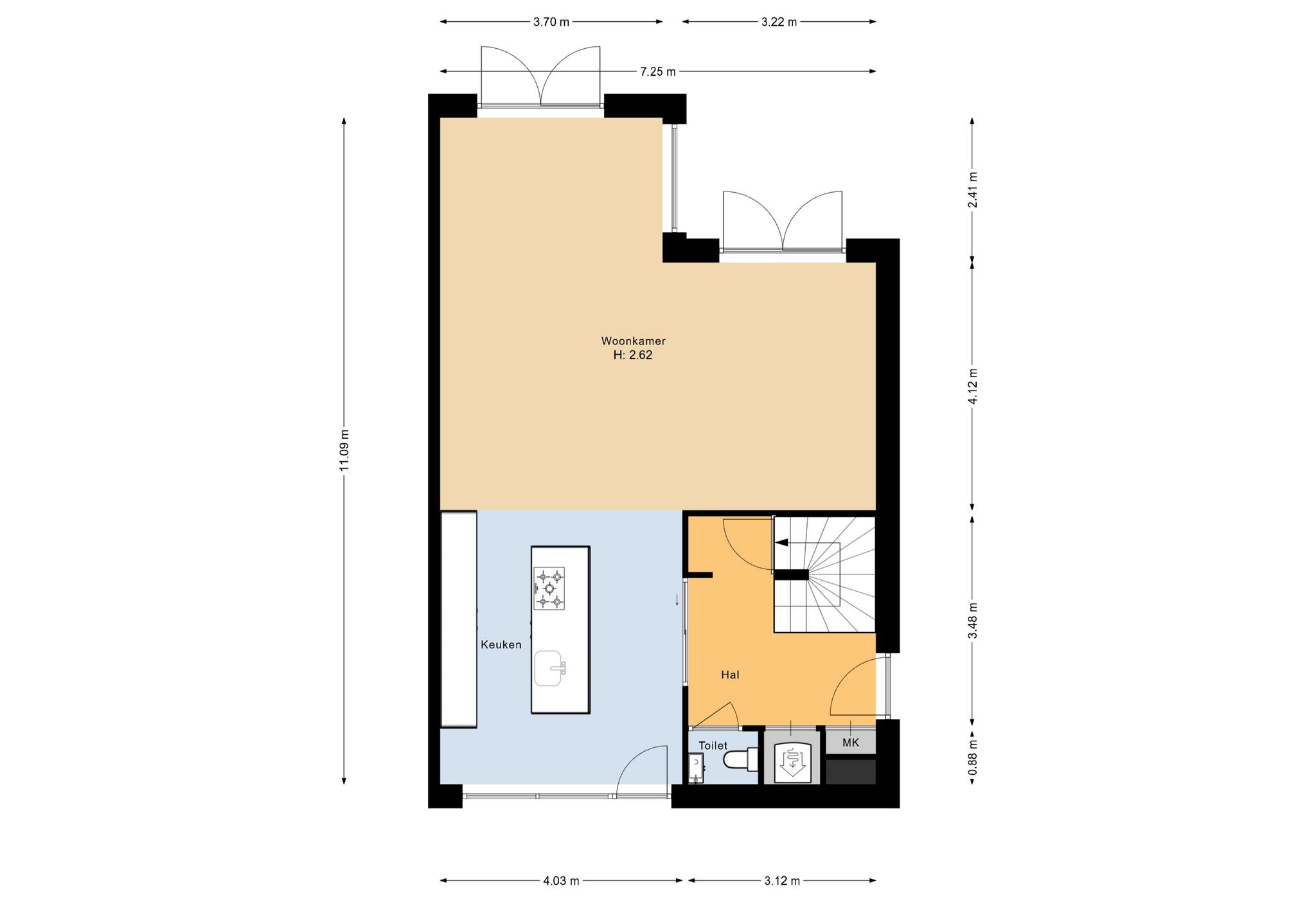 De indeling van de woning is als volgt