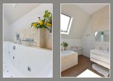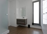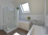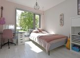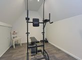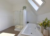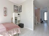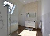 Aan de achterzijde liggen twee slaapkamers met uitzicht op de tuin. De derde slaapkamer en de moderne badkamer bevinden zich aan de voorzijde. De badkamer is uitgerust met een wastafelmeubel en douche.