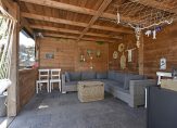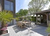 – Royale tuin op het zuiden met overkapping, diverse zitplekken, een steiger aan het water en een achterom