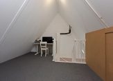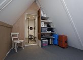 Via een vaste trap bereik je de derde verdieping. De overloop wordt momenteel gebruikt als opslagruimte en geeft toegang tot een zolderkamer. Er is op dit moment geen daglicht in de zolderkamer, maar met het plaatsen van een dakraam zou dat eenvoudig te realiseren zijn. Extra bergruimte is beschikbaar onder de knieschotten aan beide zijden van de kamer.