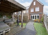 Aan de achterzijde wacht een heerlijke, zonnige tuin op het zuiden. Een plek waar rust en comfort samenkomen, met een sfeervolle veranda, elektrische zonwering en alle ruimte om tot in de late uurtjes buiten te genieten.
