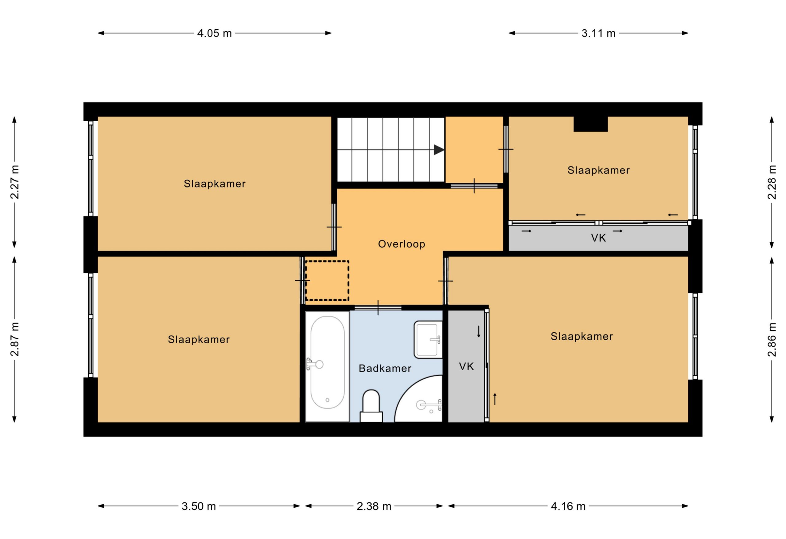 Via de open designtrap bereikt u de overloop van de eerste verdieping. Hier bevinden zich twee ruime slaapkamers aan de voorzijde en nog eens twee ruime slaapkamers aan de achterzijde.