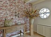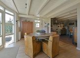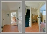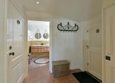 Aansluitend ligt de praktische bijkeuken met opstelplaats voor de c.v.-ketel, wasmachine en droger, een apothekerskast én een koel- vriescombinatie. De keuken, hal, toilet en badkamer zijn afgewerkt met terracotta plavuizen mét vloerverwarming.