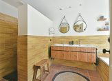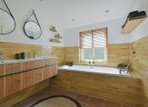 Je komt binnen via de hal met trapopgang, meterkast en toegang tot de vernieuwde badkamer en het separate toilet (beide uit 2023). De badkamer is stijlvol ingericht met een ligbad, inloopdouche, dubbel wastafelmeubel en designradiator. Het toilet is voorzien van een hangend closet en fonteintje.