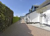 De woning wordt omringd door een fraai aangelegde tuin. Aan de voorzijde vind je Ilexhaagjes en grind. Langs de zijkant van het huis loopt een oprit met ruimte voor meerdere auto’s op eigen terrein. Een stijlvol toegangshek zorgt voor extra privacy en veiligheid.