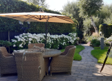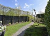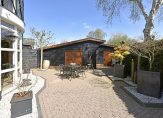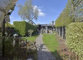 In de beschutte achtertuin zijn diverse terrassen aangelegd. Direct achter het huis staan twee multifunctionele schuren die in 2017 volledig zijn gerenoveerd.